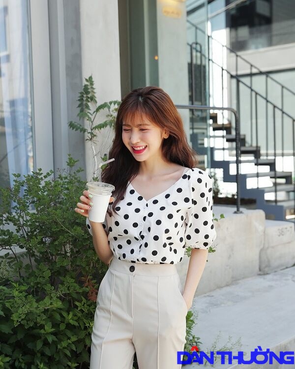 Họa tiết chấm bi với ưu thế có thể phối hợp với rất nhiều loại phụ kiện tạo ra phong cách thời trang đa dạng nhưng cũng không kém phần sang chảnh. Trang phục đính kèm họa tiết chấm bi là hot trend quần áo 2023 giúp cho các cô gái trở nên trẻ trung, nữ tính hơn với những mẫu thời trang nữ vô cùng đặc sắc.