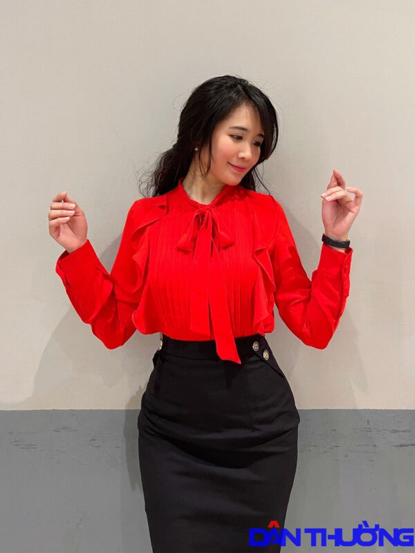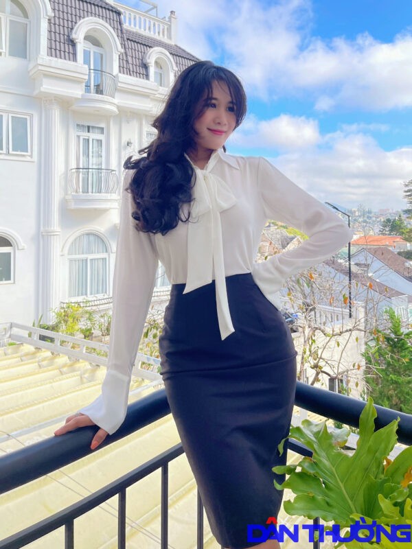 Khi phối cùng chân váy bút chì dáng ôm, nàng dễ dàng tôn dáng nhất là đối với các cô gái có vóc dáng thanh mảnh. Đây là mẫu áo sơ mi thắt nơ Hàn Quốc được yêu thích và chuộng nhất trong mùa hè 2023 năm nay.