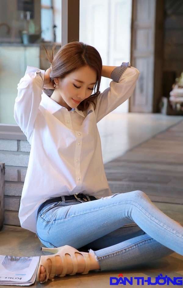 Với cách mix này, nàng cứ thoải mái phối sơ mi form dáng cơ bản cùng chiếc quần jean thoải mái nhất. Set đồ này hoàn toàn không có nhược điểm và ai cũng có thể mặc được. Hãy nhớ kết hợp cùng đôi giày thoải mái và phù hợp nha.