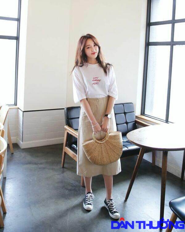Áo thun hở vai luôn là kiểu item rất được nhiều chị em phái nữ yêu thích khi phối cùng với chân váy ngắn tạo được cong tăng thêm độ quyến rũ body cơ thể.