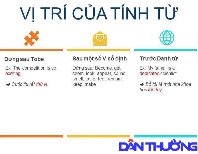 Đây là chức năng thứ hai của tính từ. Tính từ sẽ đứng ở đầu câu đối với chức năng này.