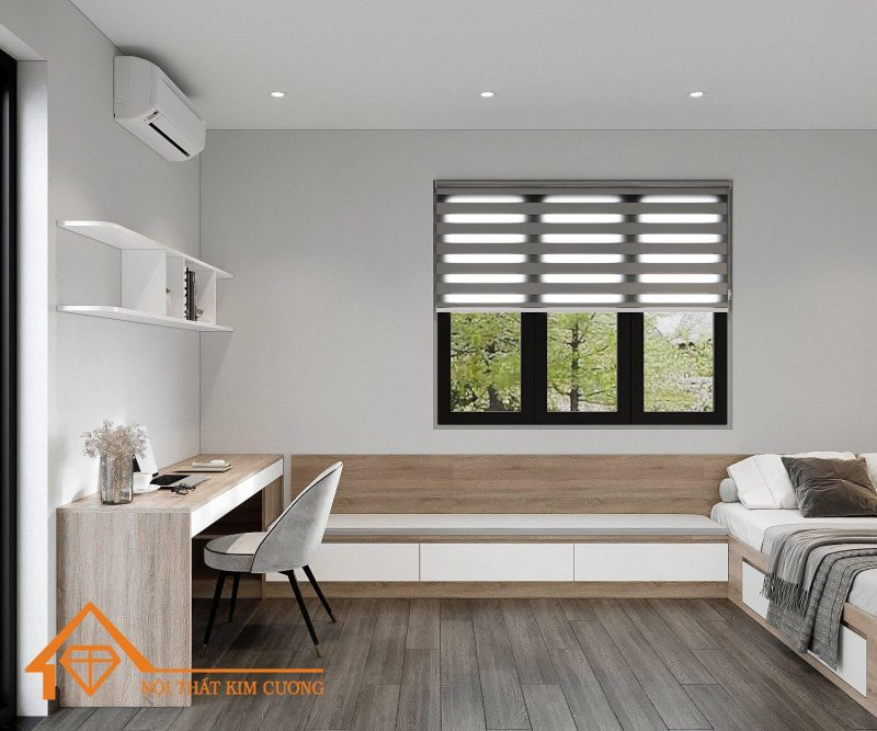 • – Gam màu chủ đạo: màu sáng, màu xám, màu trắng,.. kèm phụ kiện trang trí ít họa tiết.